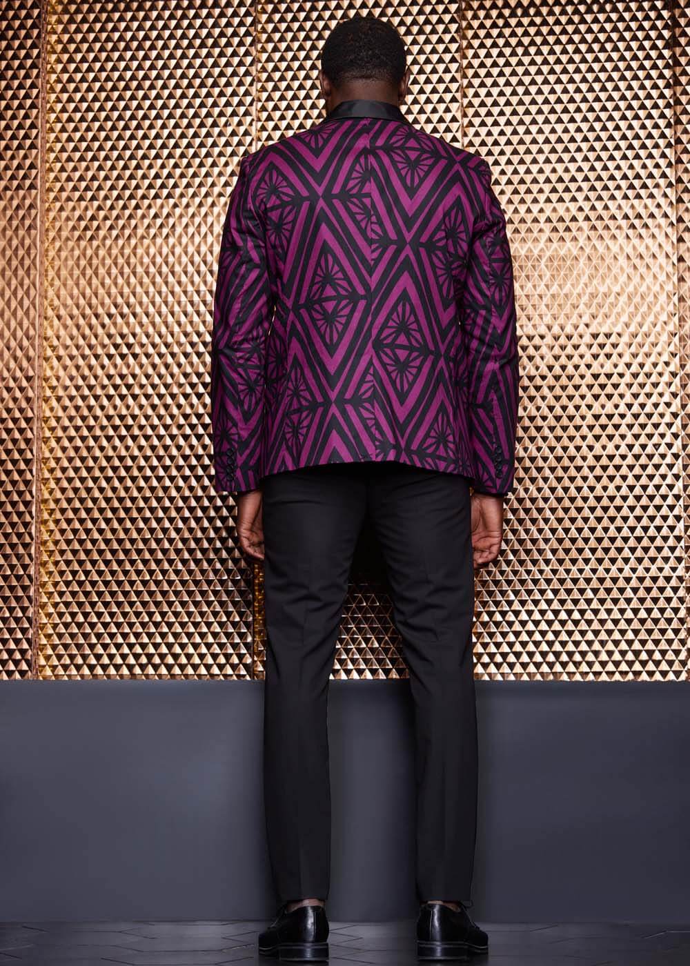Enofe Men's African Print Blazer (Plum Diamonds)