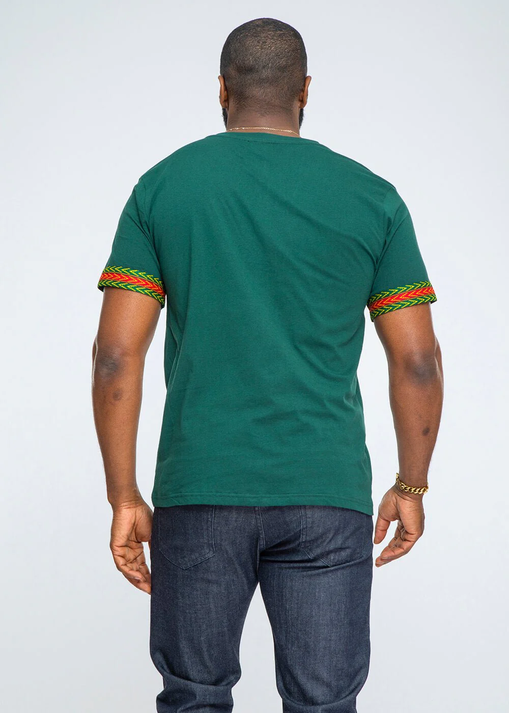 Men's African Print Dashiki T-Shirt (Forest Green/Maroon)